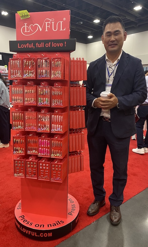 가장 눈에 띈 것은 라플레어(LaFlare) 사 부스 중앙에 세워진 네일 아트 회전식 디스플레이였다. 기계로 만들 수 없을 만큼 사람의 손으로 정교하게 제작된 프레스 온 네일(Press-on Nail) 제품이었다. 최근 인스타그램과 틱톡 인플루언서들 사이에서 큰 화제를 모으며 아마존에서 폭발적인 인기를 누리는 새로운 개념의 네일 아트 제품이다. 처음 등장했을 때 세트당 약 45달러의 고가였음에도 제품이 없어서 못 팔 정도로 인기를 끌었다. 100% 수제로 제작되어 한 사람이 하루 1~2세트밖에 만들지 못하는 희소성 덕분에 수집가들까지 등장하는 기현상을 보인 특이한 제품이다.