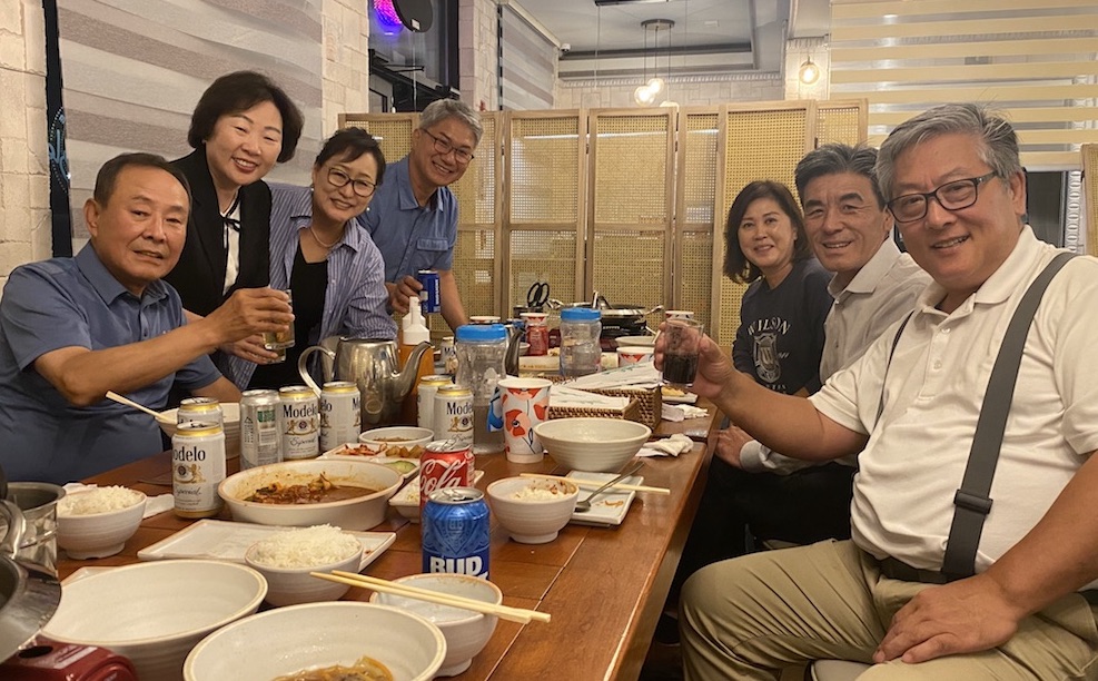 뷰티플러스사가 개최한 뒷풀이 디너 사진 왼쪽부터 김종선 중서부광역협회장, 박미미 회장, 이은경 전 여성회장, 이상용 인디애나폴리스협회장, Mrs. & 이형복 시카고협회장, 장현석 코스모비즈 연구소장.